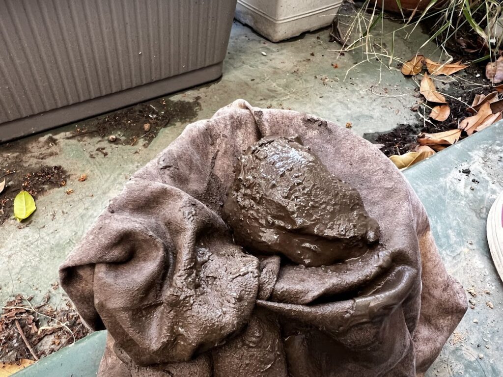 モロモロっと崩れました。つまり、未焼成の乾燥粘土だった、という結果です(もしくは極低温焼成)。