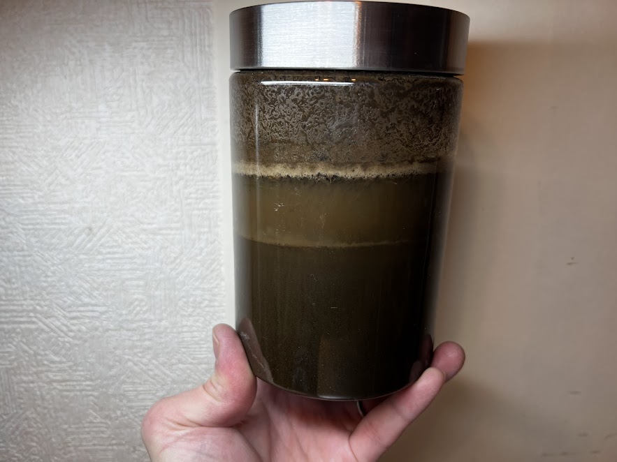 白っぽかった破片が、精製水を注ぐと黒くなりました。つまり、耐水性がなく、一瞬で水を吸ったということです。そして少し振ってみると・・・