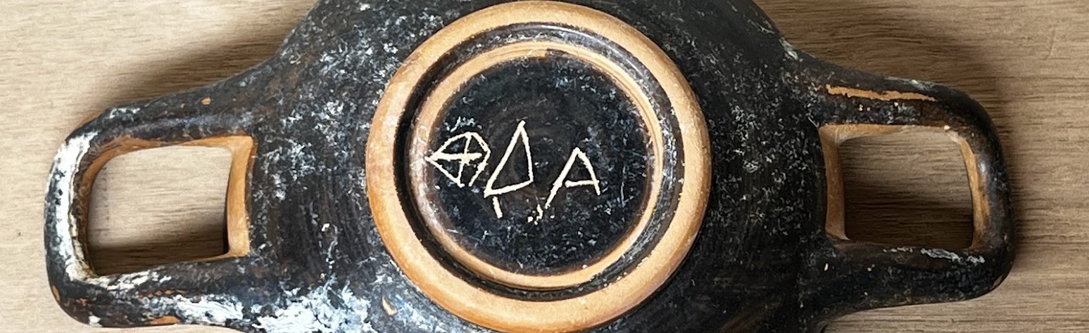 羊皮紙工房所蔵の紀元前6世紀と紀元前5世紀の古代ギリシャのワインカップ(キュリクス)を基に、実践を交えて陶片に文字を刻むということを検証します。